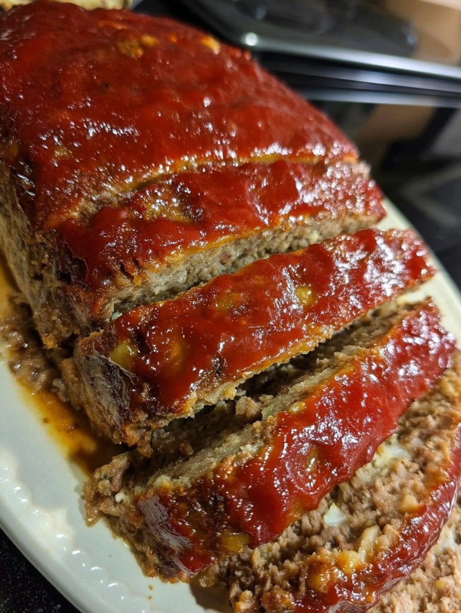 • Combine topping ingredients together in a small bowl and pour over meatloaf mixture.